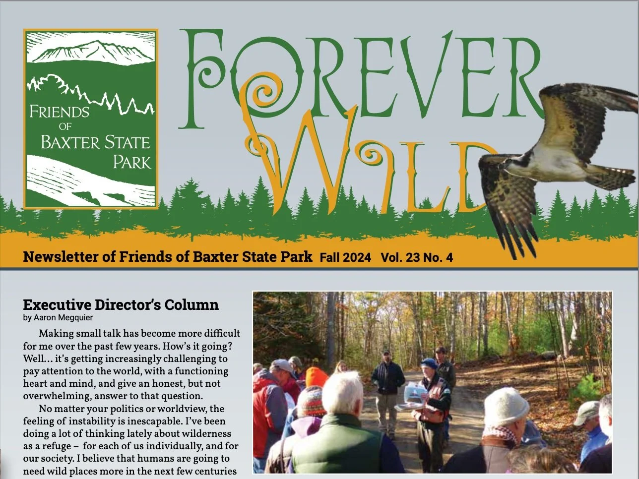 Summer 2016 Volume 15.3 Scientific Forest Management Area; Baxter State Park Field Guide Released; Highlights of our Annual Meeting; Baxter Beyond Katahdin