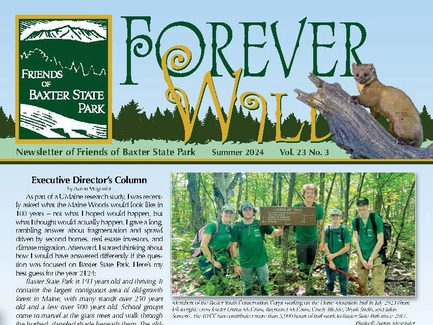 Summer 2019 Volume 18.3 Bissel Brothers Preserve and Protect; President’s Column - Katahdin Lake; Park Updates - Trails; Birds of Baxter
