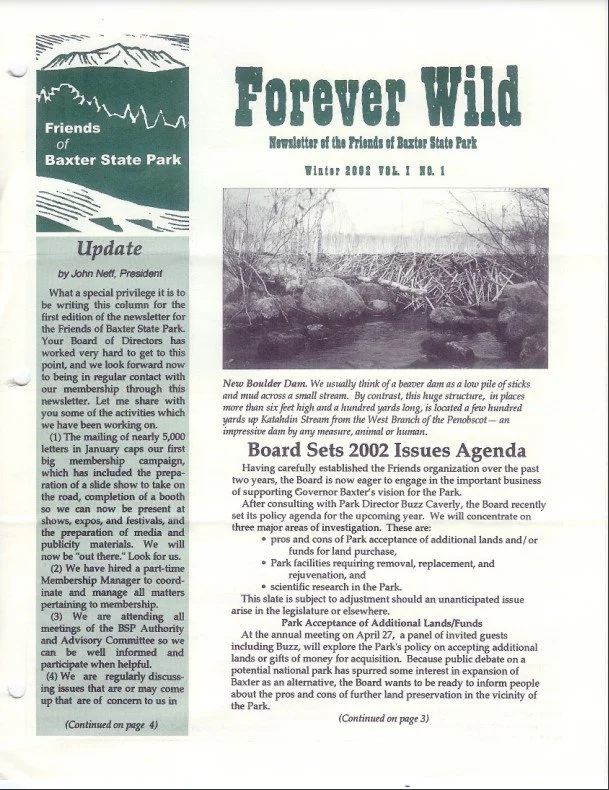 Winter 2004 3.1 Quimby purchase controversial, Friends meets with Fin and Feather Club, Baxter nephew Jack Baxter recalls critical political action